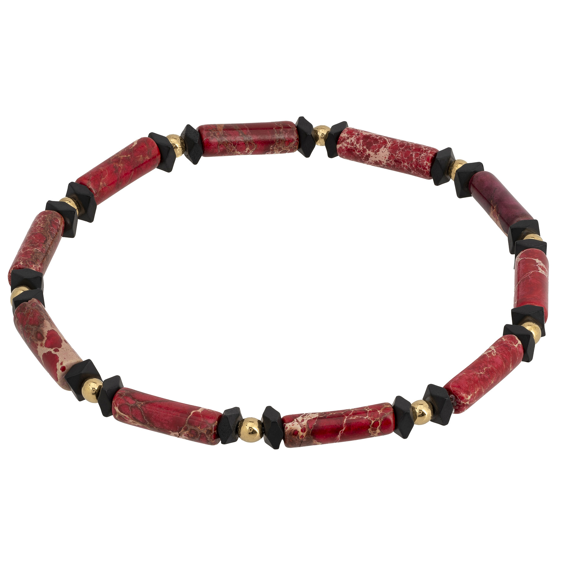 Bransoletka męska z kamieni jaspisu cesarskiego to wyjątkowy dodatek, który łączy w sobie nie tylko elegancję, ale również głębokie symboliczne znaczenie. Kamienie jaspisu cesarskiego, o charakterystycznym kształcie patyczków-walców, wyróżniają się unikalnym wyglądem, dodając bransoletce niepowtarzalnego charakteru. Przekładki z hematytu dodatkowo podkreślają jej nowoczesny styl, tworząc harmonijną i stylową całość.