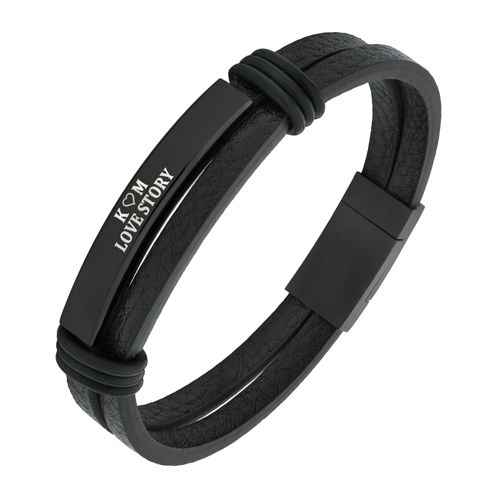 Męska bransoletka o minimalistycznym designie wykonana została z wysokiej jakości skóry i stali nierdzewnej. Blaszka w centralnej części bransoletki została unieruchomiona za pomocą silikonowych stoperów po obu stronach, dzięki czemu pozostaje zawsze na właściwym miejscu. Bransoletka podlega personalizacji poprzez wykonanie precyzyjnego grawerunku – czyniąc bransoletkę wyjątkowym prezentem i pamiątką na lata.