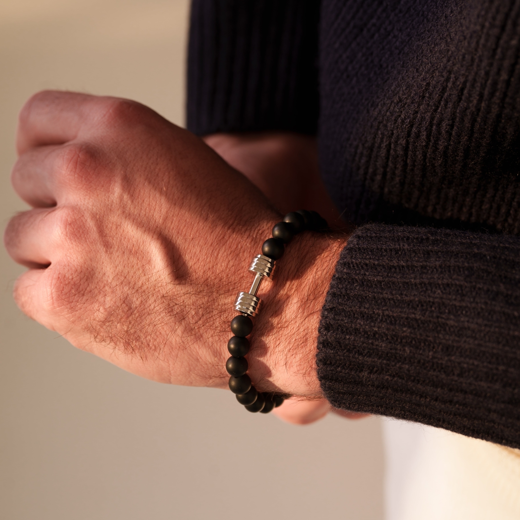 Codzienny motywator w Twoich sportowych wyzwaniach – oto bransoletka z motywem hantli, czyli najpopularniejszym atrybutem wszystkich sportowych maniaków. Połączenie ponadczasowej czerni i hantli w kolorze srebrnym sprawia, że bransoletka sprawdzi się noszona zarówno do dresów jak i t-shirtu.