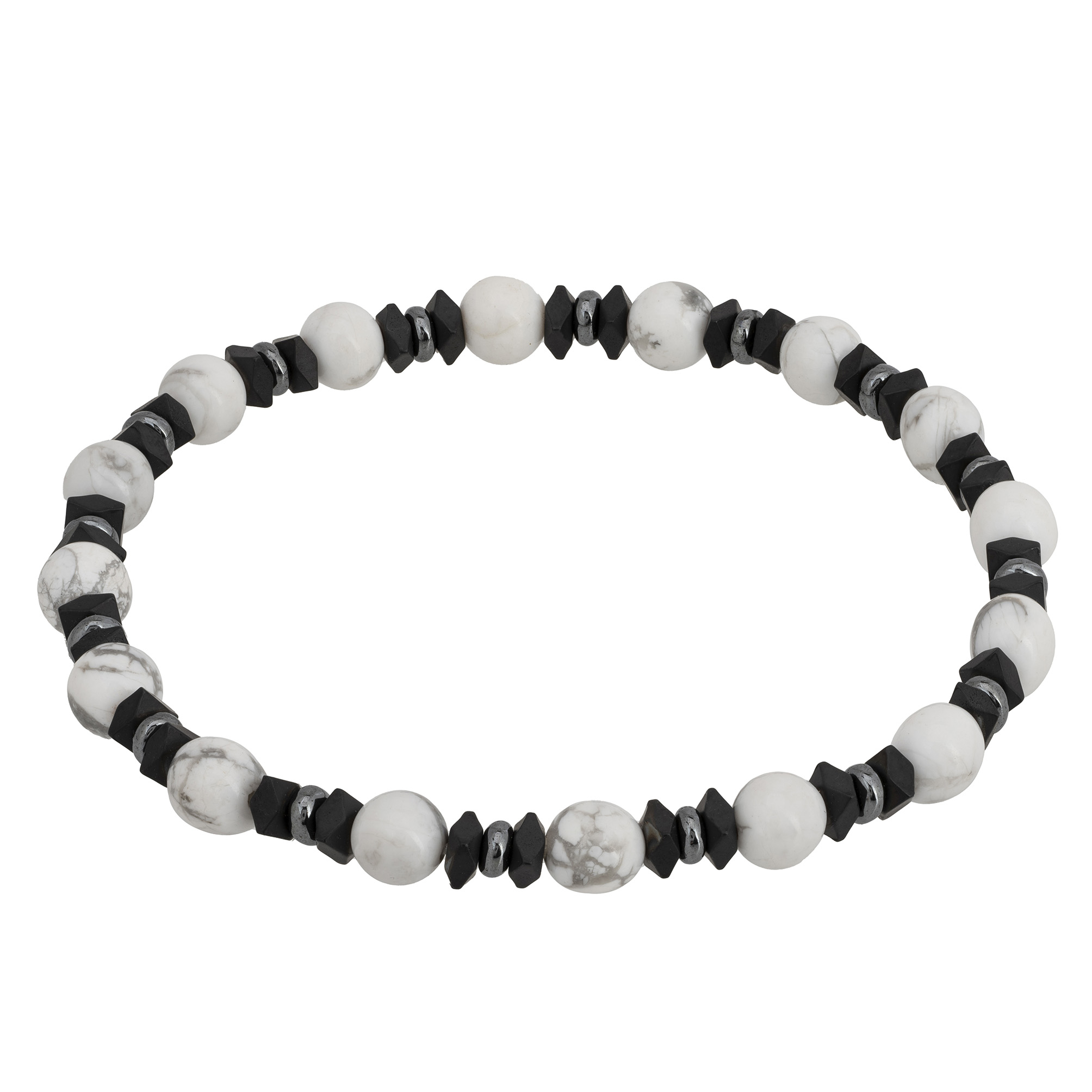 Bransoletka męska z kamieni howlitu to wyjątkowy dodatek, który łączy w sobie elegancję i trwałość. Wykonana z kamieni howlitu o średnicy 6 mm, bransoletka wyróżnia się naturalnym pięknem i wyjątkowym wzornictwem. Kamień howlitu, znany ze swojego spokojnego, białego koloru z delikatnymi szarymi żyłkami, dodaje bransoletce subtelnej elegancji i uniwersalności. Bransoletka jest dodatkowo ozdobiona przekładkami z hematytu, które dodają jej nowoczesnego akcentu i podkreślają jej wyjątkowy charakter. Hematyt, znany ze swojego metalicznego połysku, wspaniale komponuje się z białym howlitem, tworząc harmonijną całość.