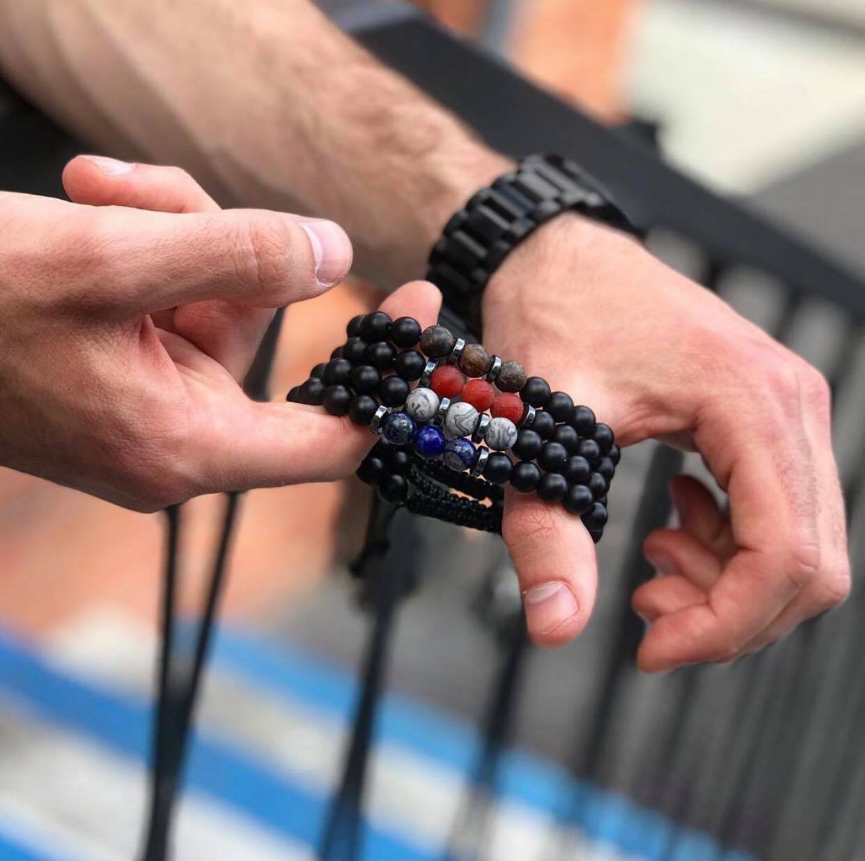 Kamienie: onyks, jadeit, bronzyt, jaspis, lapis 8 mm.