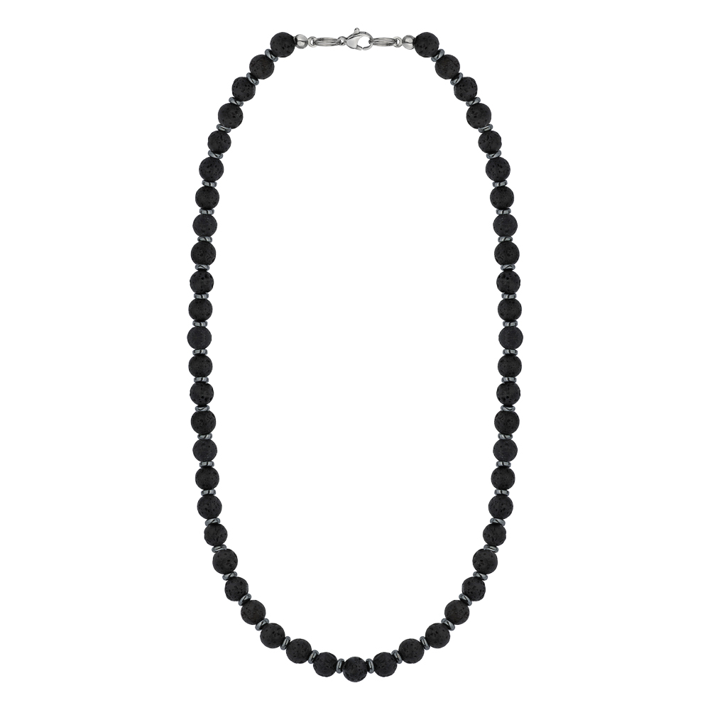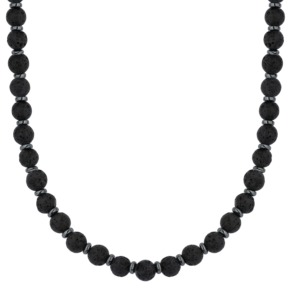 Naszyjnik męski z lawy wulkanicznej i hematytu – dodatek z mocą natury