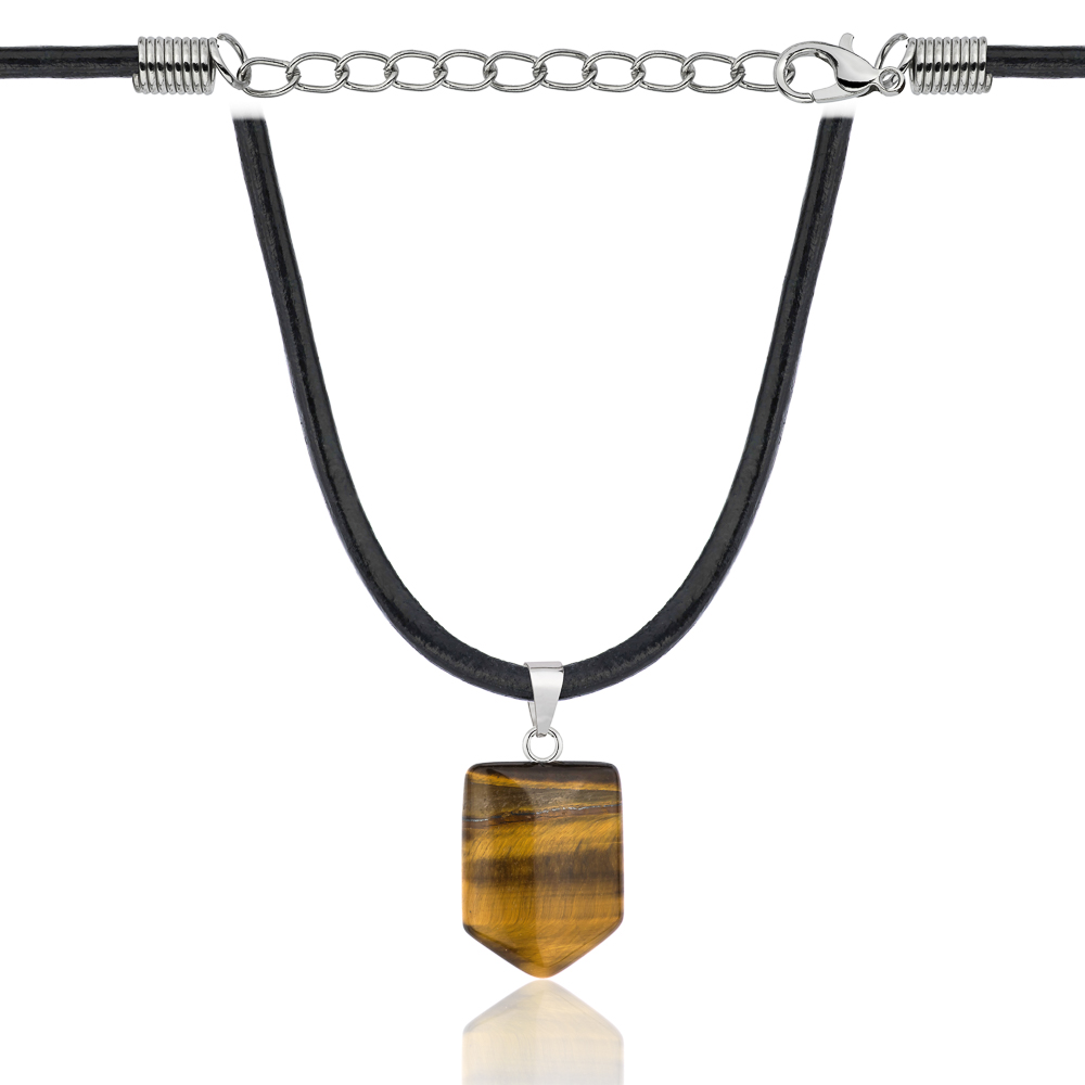 Naszyjnik męski ze skórzanego rzemienia z zawieszką z kamienia tygrysiego oka to wyjątkowy dodatek, który łączy w sobie elegancję, siłę i męski styl. Skórzany rzemień dodaje naszyjnikowi surowości i klasy, podczas gdy zawieszka z kamienia tygrysiego oka wprowadza element naturalnego piękna i wyrazistości. Tygrysie oko, znane z charakterystycznych, złocisto-brązowych pasm, przyciąga wzrok swoim hipnotyzującym blaskiem i dodaje naszyjnikowi unikalnego charakteru. Ten naszyjnik to idealny wybór dla mężczyzn, którzy pragną podkreślić swoją siłę, determinację oraz wyrafinowany styl.